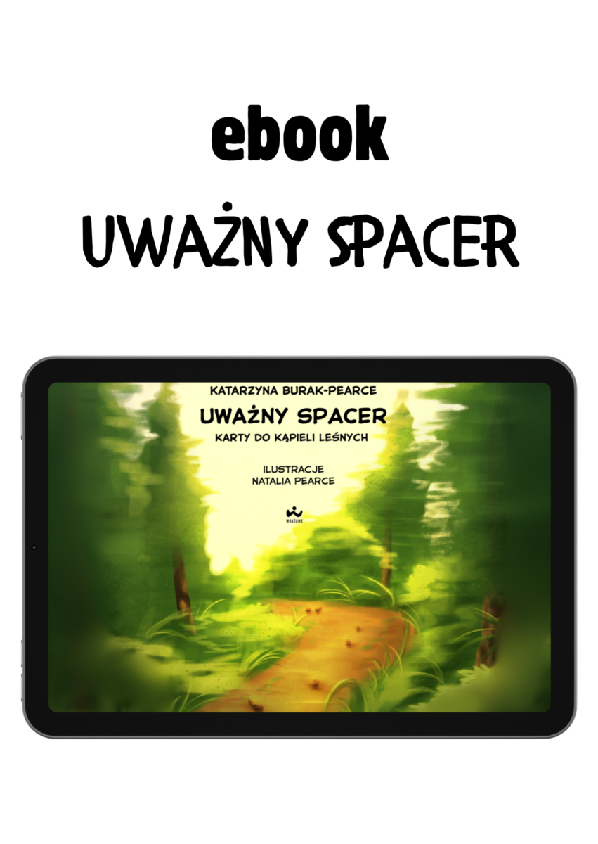 Zestaw kart uważności, które zamieniają zwykły spacer w pełną zmysłów, spokojną i bliską naturze przygodę dla dzieci i dorosłych.